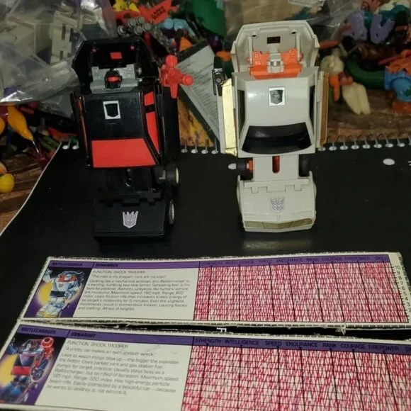 The Battlechargers, Runamuck and Runabout were sort of the Decepticons answer to the Jumpstarts although, they seem like they´d get smoked in a battle with them. Both are complete with cards and firm decals. Collections of Ninja Turtles, Star Wars, GI Joe, Transformers and more so check out our page. Bundle for savings on shipping.