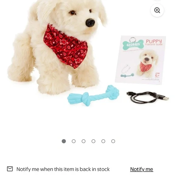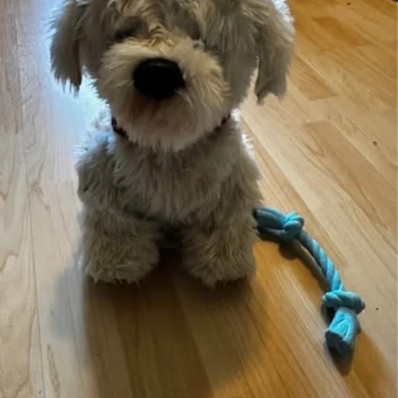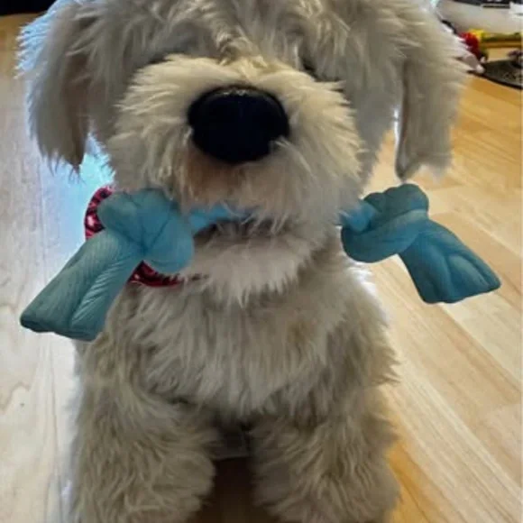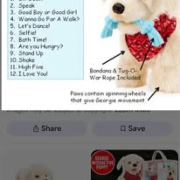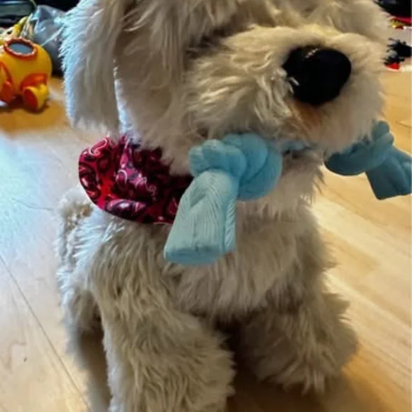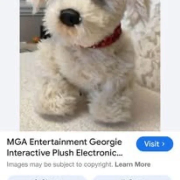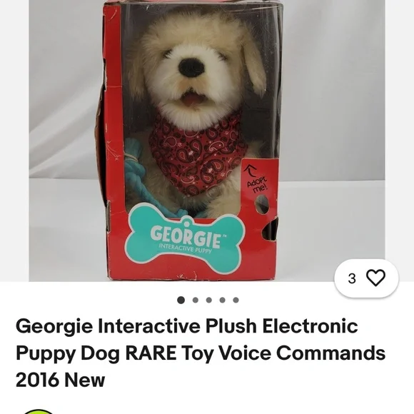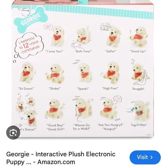 Video: https://youtu.be/Op4wKJ_TJiM?feature=sharedThe Georgie Interactive Puppy is a plush electronic toy that responds to voice commands. To interact with Georgie, you must first say "Hey Georgie!" and then give one of the commands listed in the included manual. Georgie will then respond with actions like yipping, barking, dancing, or playing tug-of-war. Requires a quiet environment to understand commands. Key Features and Instructions:Activation: Turn Georgie on and say "Hey Georgie!" to activate the toy. Commands: Speak clearly and loudly, giving one command at a time after saying "Hey Georgie!". Interaction: Georgie responds to various commands, including "Let´s Dance!", "Sit Down", "Stand Up", "Shake", "High Five", "I Love You!", "Wanna Go For A Walk?", "Selfie!", "Good Boy/Girl", and "Bath Time!". Tug-of-War: Place the rope toy in Georgie´s mouth and gently pull to play. Petting Interaction: Pat Georgie´s head to hear barking, yipping, and panting. Four head pats will make Georgie lay down. Sleep Mode: Georgie falls asleep after three minutes of inactivity and can be turned off manually. Charging: Georgie is rechargeable via USB. Voice Sensitivity: Georgie may be sensitive to voice pitch, so try different tones if he doesn´t respond.