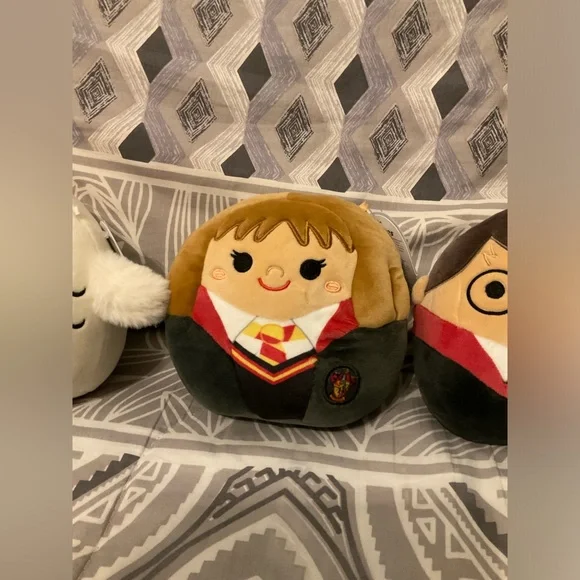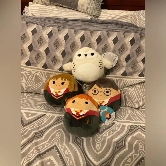 NWT.**Harry Potter BUNDLE**Harry - Ron - Hermione - Hedwig the OwlSquishmallows are cute, cuddly, and ready to join your squad. Made with super soft, marshmallow-like material, Squishmallows offer comfort, support and warmth as friends, couch companions, pillow pals, bedtime buddies and travel teammates. With more than 475 Squishmallows characters to collect, there’s a Squishmallow for everyone. Each Squishmallow has its own unique name and storyline to add to the fun. Who will join your squad next?