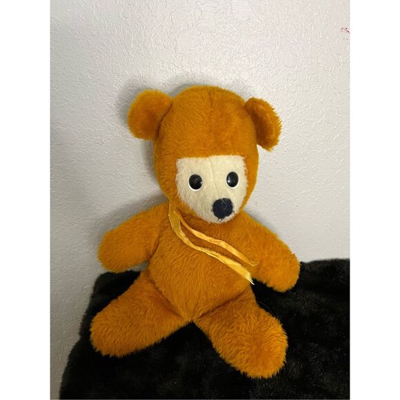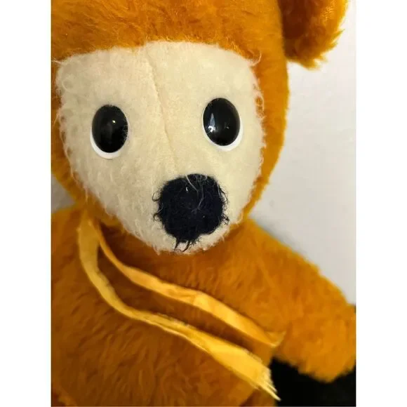 Vintage Teddy Bear Plush Orange Blue Nose White Face Animal Fair Stuffed Animal