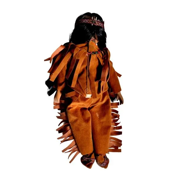 Vintage Native American Indian Girl With Hand Painted Face gently cherished and in good condition. One Hair bow missing and small stain on outfit. She is approximately 16" Long and beautiful. Add her to your collection. See all pictures before purchase. Shipped with CARE from a Non smoking household with no pets!Features:• Porcelain, Hand PaintedSize: Unisex Approximately 16" longCondition: Pre-Owned Good