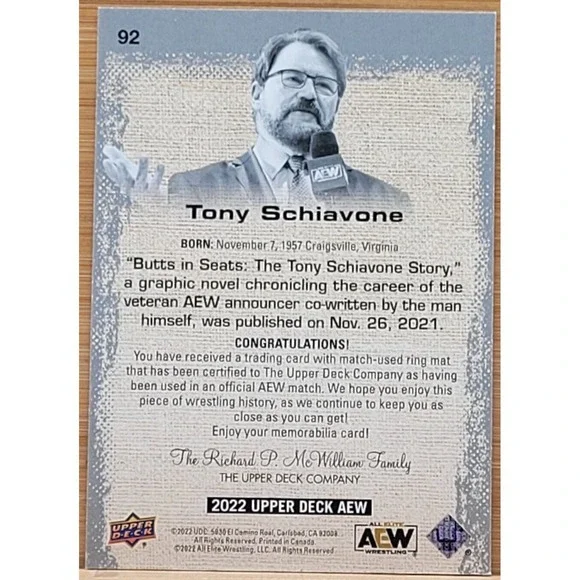 2022 UPPER DECK AEW TONY SCHIAVONEGOLD RELIC #D/49
