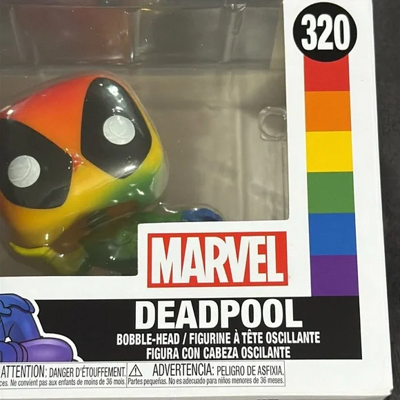 Funko Marvel Deadpool Pride Rainbow Bobble-Head Vinyl Figure #320. Special Edition. New in Box! Perfect for collectors or fans alike!See pics for details, measurements approximate, stock & IRL pics included