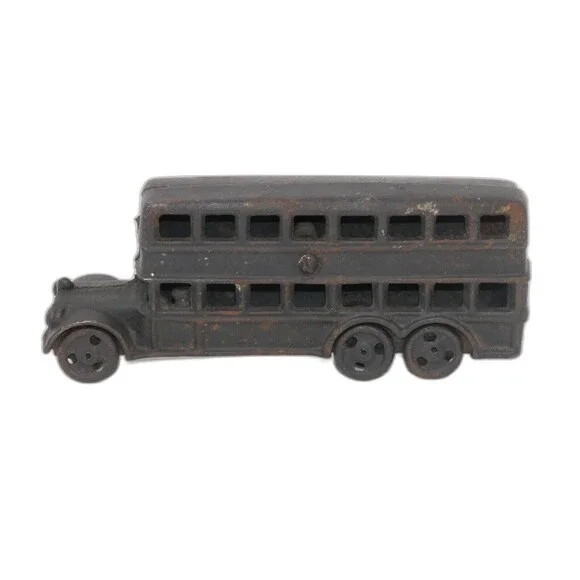 Up for sale is a vintage A C Williams Cast Iron Double Decker Bus & Driver Toy. This measures approx. 7 1/2" long with wear from age. See photos for item condition, this is a picture of the actual item. All reasonable offers considered!!
