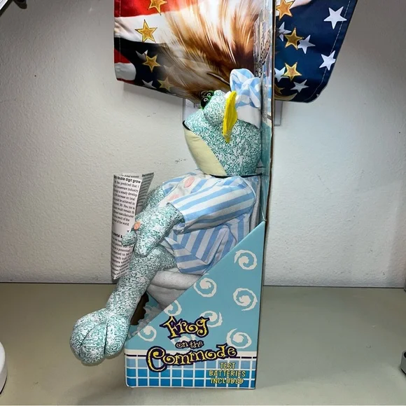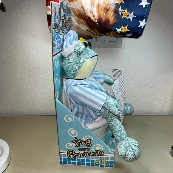 New Rare vintage Frog On The Commode Plush ToyFunny noise (toilet) squeeze me! With his nightshirt, nightcap, and newspaper, this frog on the commode is ready to start his day! Squeeze his hand and send him on his way! Is been on display & storage please check the pictures carefully for better look thanks