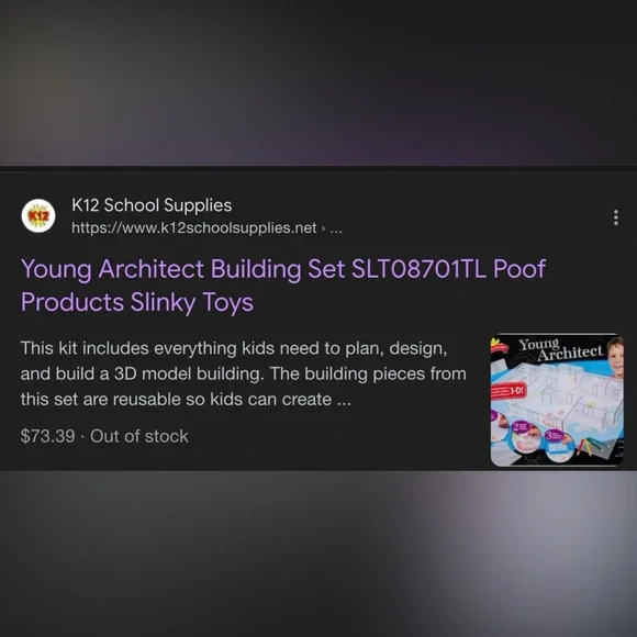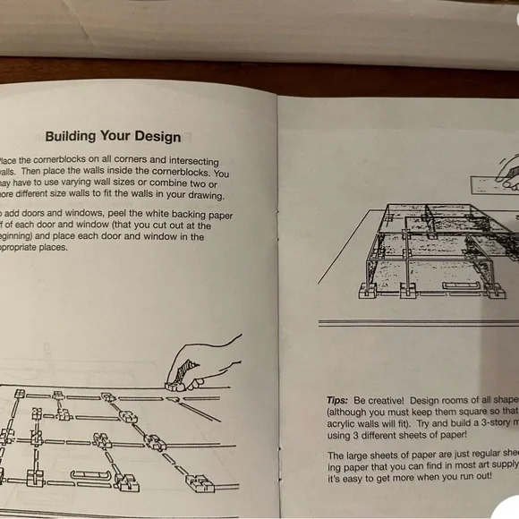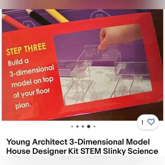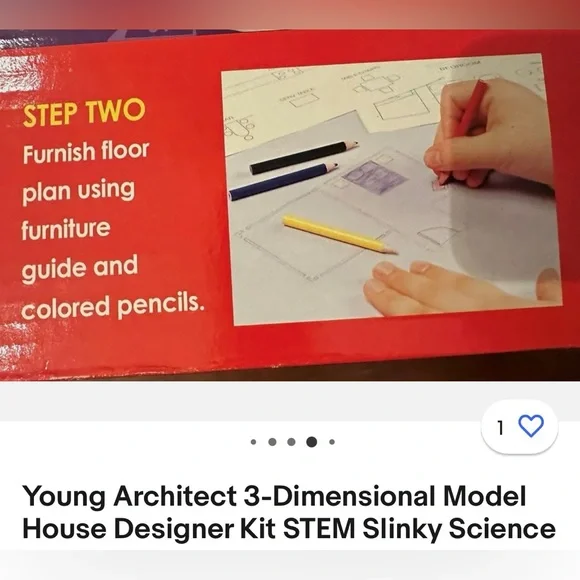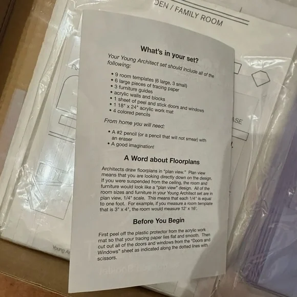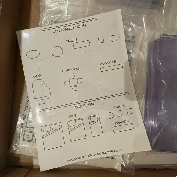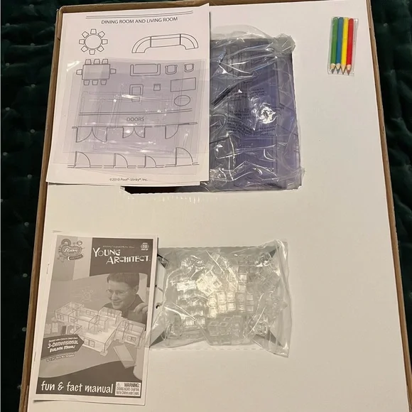 Young Architect Slinky Brand Kit - plan, design, and build your own 3-Dimensional buildings. Reusable materials allow as many creations as you can imagine, in just 3 steps. Includes blocks, room templates, furniture templates, drawing pencils, building materials, and instruction booklet. Purchased as a gift for our daughter - it has been opened, but never used. Smoke free home. Please see photos.
