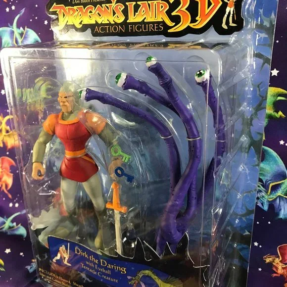 Selling a Dragon´s Lair 3D Series 1 Dirk the Daring Action Figure in excellent condition still sealed in package never opened. The figure is 6" tall and comes with Eyeball Tentacle Creature made by Anjon Inc. in 2002. Toy is recommended for ages 6 and up.