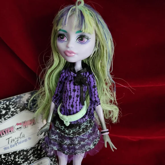 Snag this amazing Monster High Twyla doll from the 2013 Monster High 13 Wishes movie! She is out of her box, having been displayed, but includes many her original accessories.-items missing: stand, brush, purse and one earring-see my other listings for more Monster High dolls-non-smoking storage- fingers, toes, watches and velvet not included