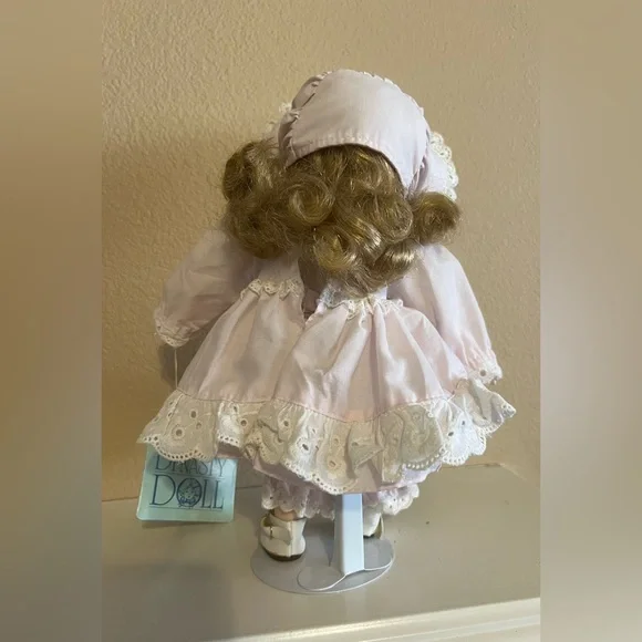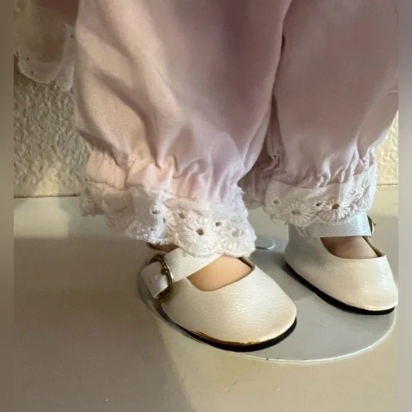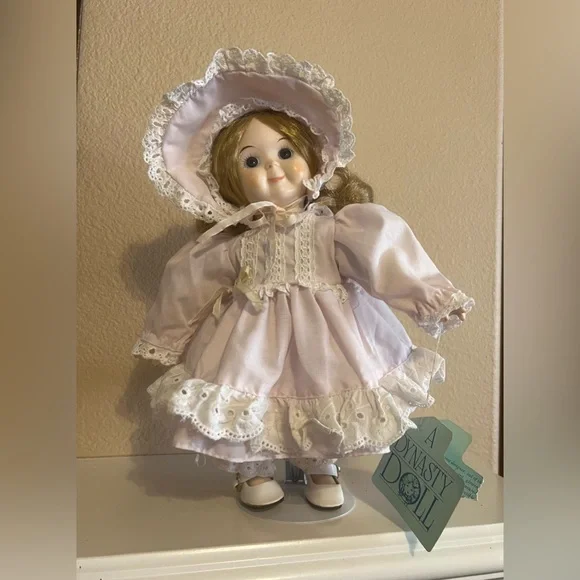 A Dynasty DollPorecelain DollAbout 12”No original box or packagingComes with standPlease look at all pictures, her dress is opened from the back and has no buttons, she has no socks and the elastic on her shorts are aged, this doll needs TLCOverall beautiful dollI read she is a bisque doll, but I really don’t know how to tell the difference’s between porcelain or bisque, so I just know it’s breakable