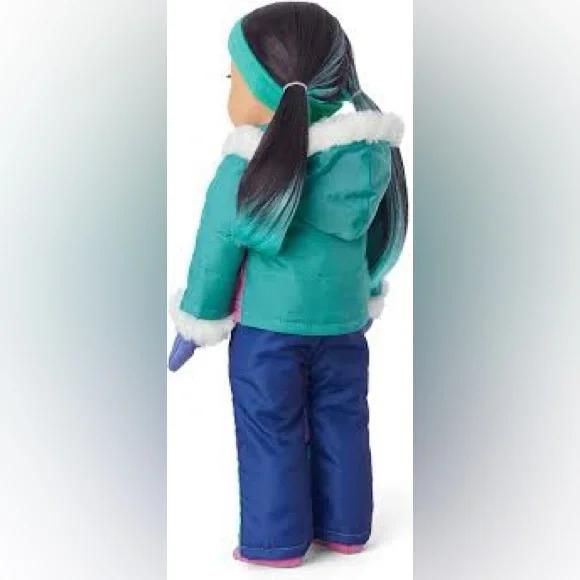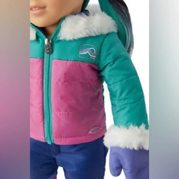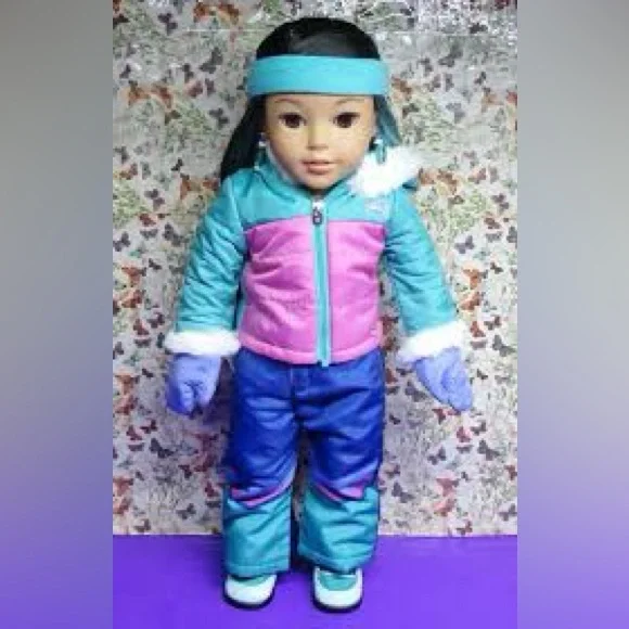 The American Girl Winter Fun Doll is dressed in a vibrant pink and blue ensemble, perfect for snowy adventures. With a stylish winter jacket and matching accessories, this doll is ready for imaginative play in the cold. Ideal for those who love dolls and accessories, this toy brings endless fun and creativity.***missing pink socks***