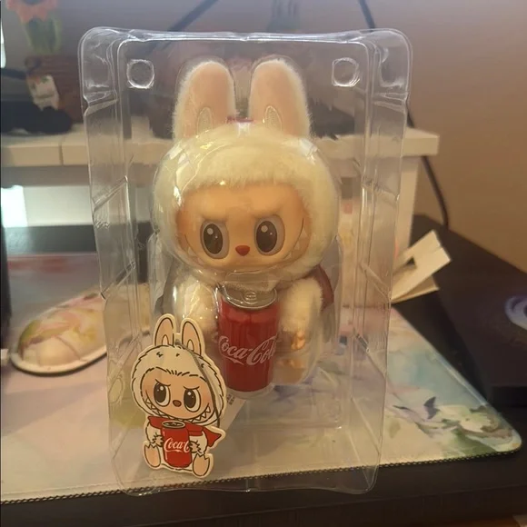 Pop mart Coca-Cola themed vinyl plush keychain . Opened box from bottom to verify by tag . They stopped making them and will not restock.