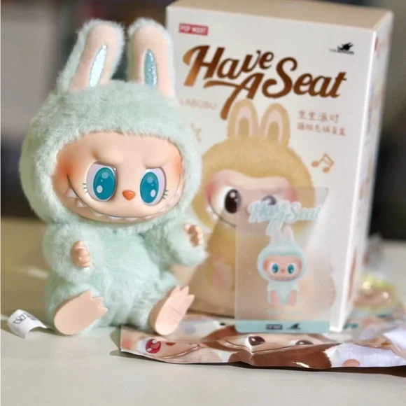 Labubu Mint Green Bunny Plush Toy QuQu have a seat
