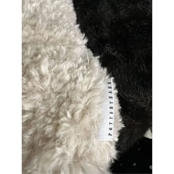 Pottery Barn Faux Fur Doodle Dog Pillow Neutral Bell Collar