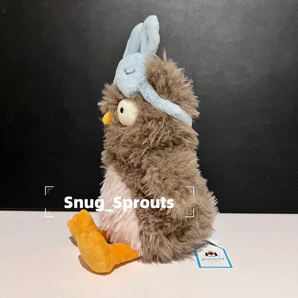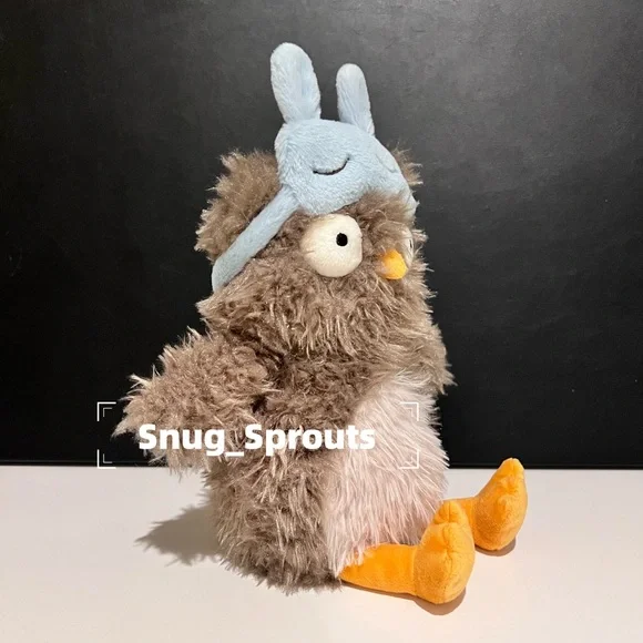 Audrey Hootsoftly loves to sleep in, which is why she´s wearing her blue suedette mask! It´s even got embroidered lashes! This mocha owl has bed-head fur and wide-awake bobble eyes! With sunny feet, tiny wings and an oatmeal patch on her tummy, Audrey´s an absolute hoot.Dimensions:9.4in x 4.7in x 4.7inSitting Height:7inYou will receive the exact face shown in the pictures‼️Please review all photos carefully before purchasing. All sales are final.✔ 100% Authentic, Pet-free & smoke-free home✔ Ships same or next business day✔ Optional dust bag: Small $3.99 | Medium $5.99 | Large $8.99♥ Check out my page for more rare & retired Jellycats! Bundle & save!