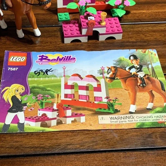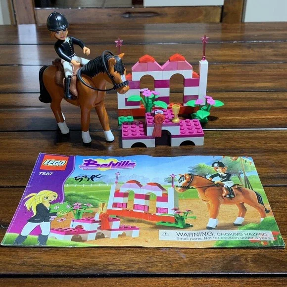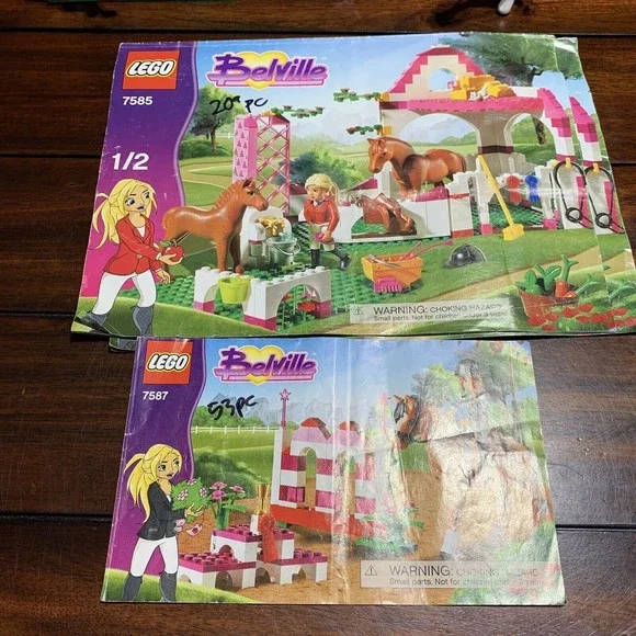 This complete set of two Belville sets includes the Horse Stable 7587 and Jumping 7585, featuring a total of 262 plastic pieces for ages 12+. The sets are themed around equestrian...