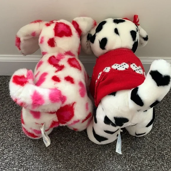 Build a Bear puppy bundle lightly used Original Hearts fur you puppy/Love heart Dalmatian Love heart Dalmatian has slight discoloring on the mouth as pictured. Both stuffed