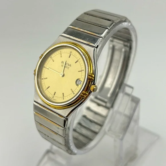 Elegant Bulova Quartz watch featuring a sleek silver and gold design. Perfect for any occasion.