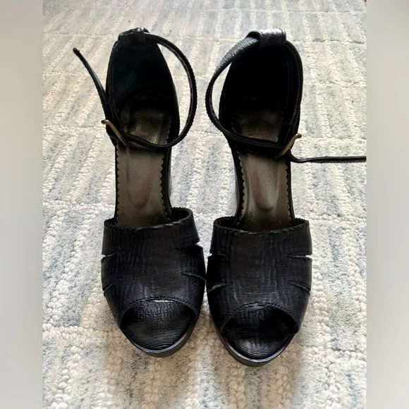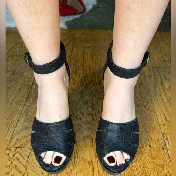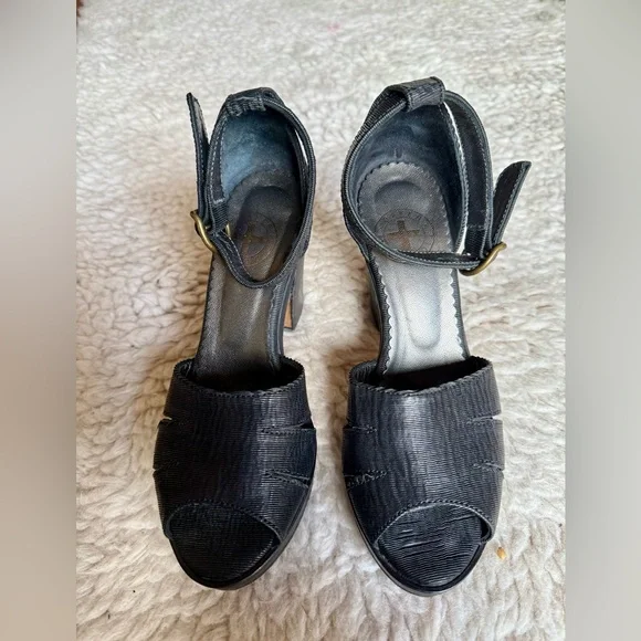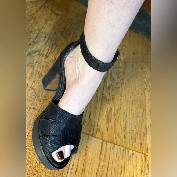 Stunning Fiorentini + Baker black platform block heel sandals. I normally wear a 38 and a 7.5, but I had to size down to 37 on these. I think this is closest to a true 7.5. They...