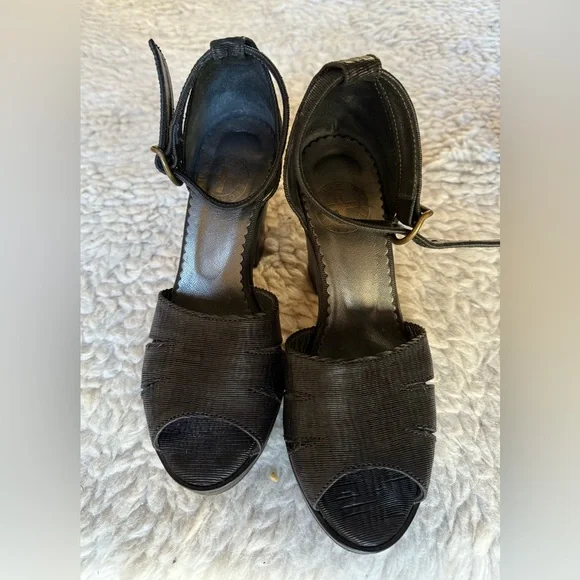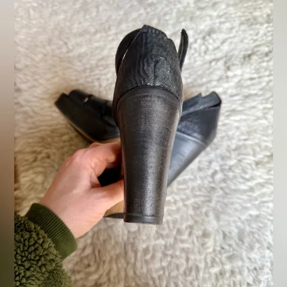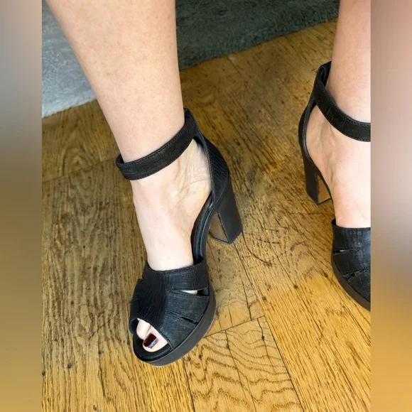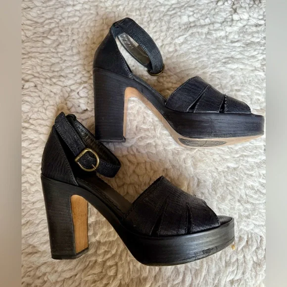Fiorentini + Baker Black Platform Heel Sandals 7.5 LIKE NEW