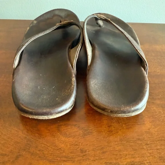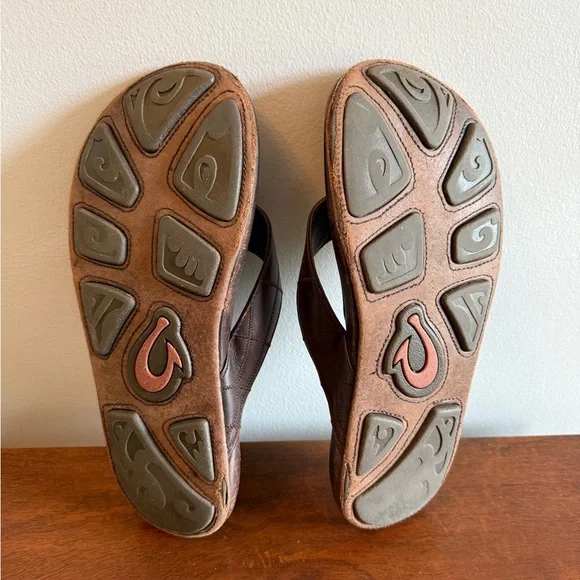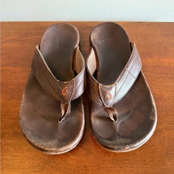 OluKai Brown Leather Flip-Flops Classic Comfort