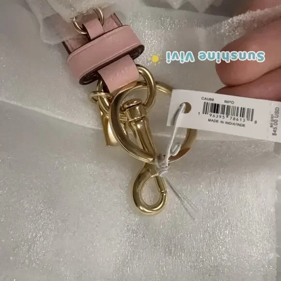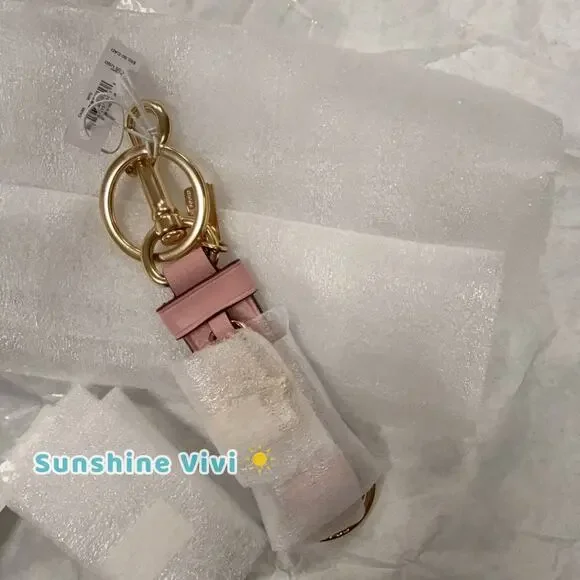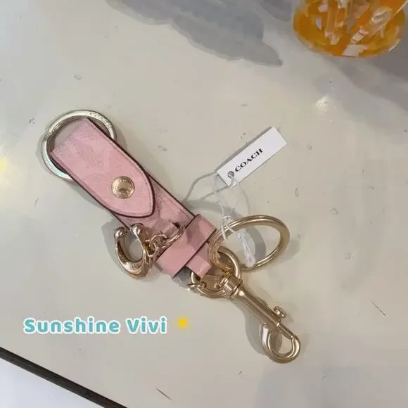 NWT COACH CAU86 Trigger Snap Bag Charm Powder Pink Key Chain