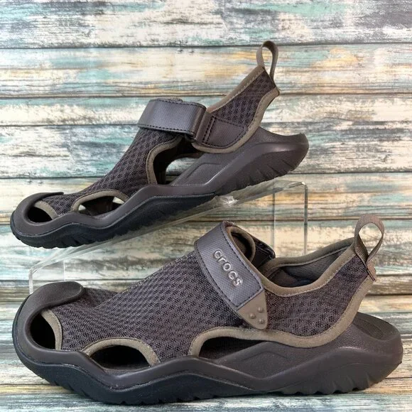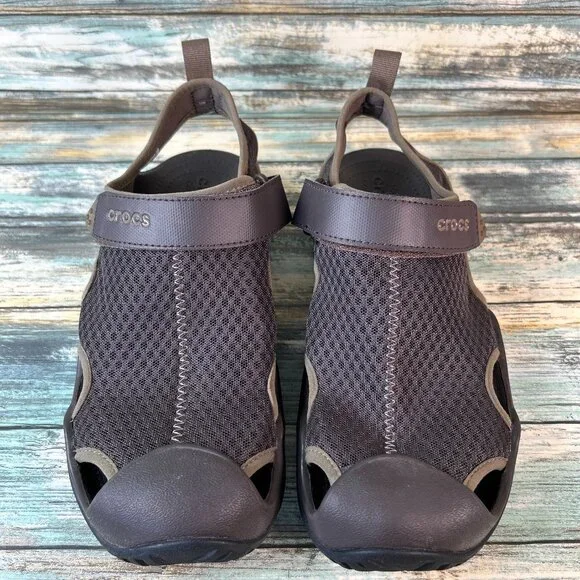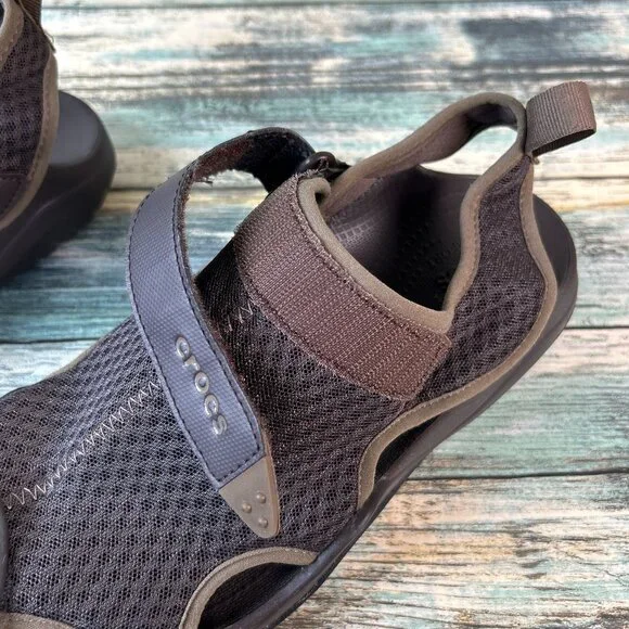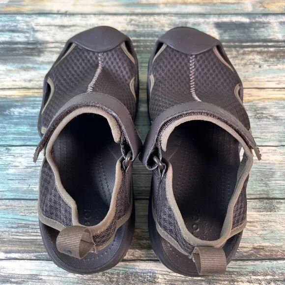 Crocs Sport Sandals Mens Size 8 Brown Mesh Adjustable Strap Outdoor Water Shoe.Very nice, light wear no damage.