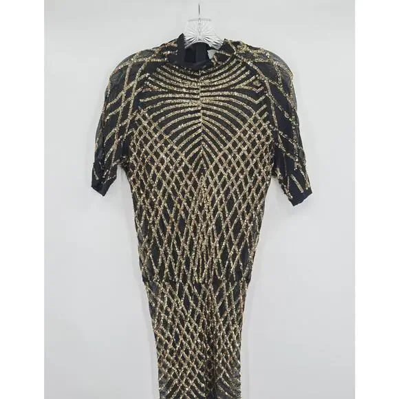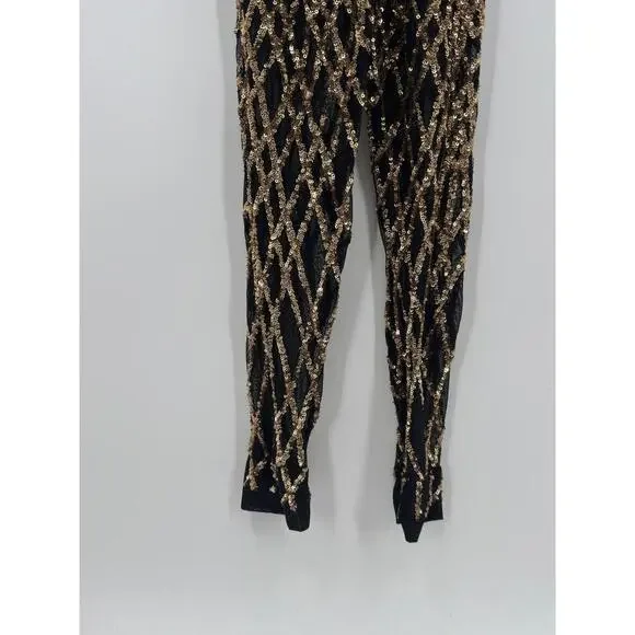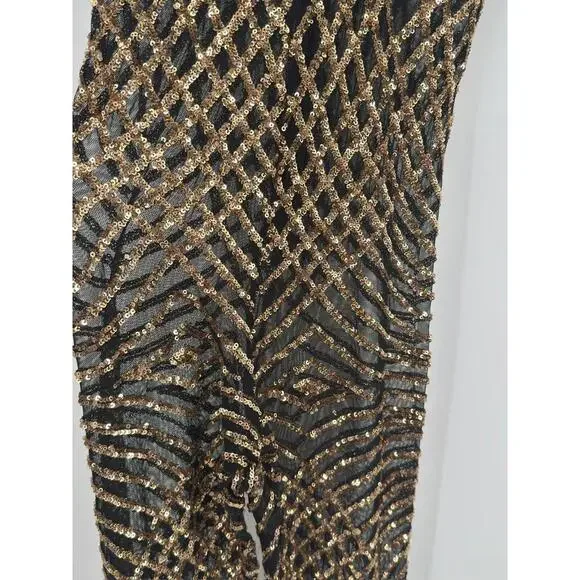 Slick it Up New York Mens Black Gold Sequin Short Sleeve Jumpsuit Sz SPit to pit 18.5Inseam 29