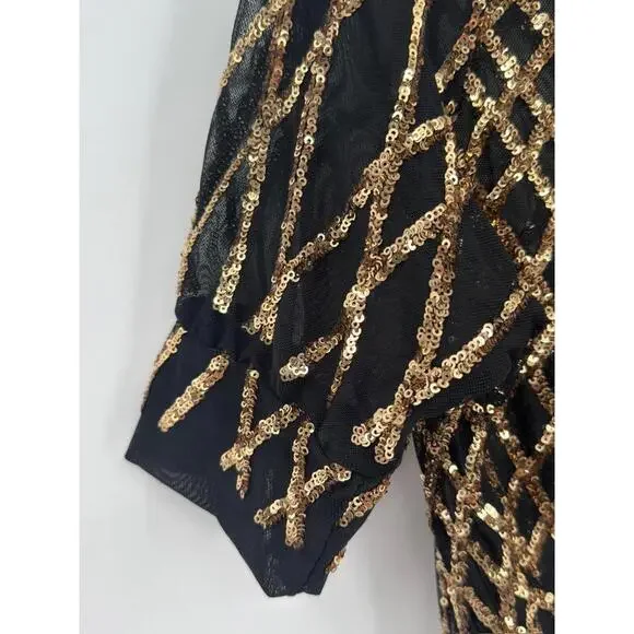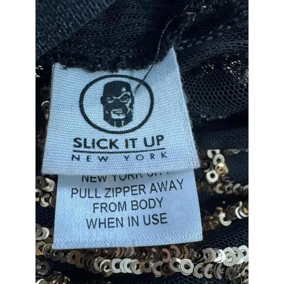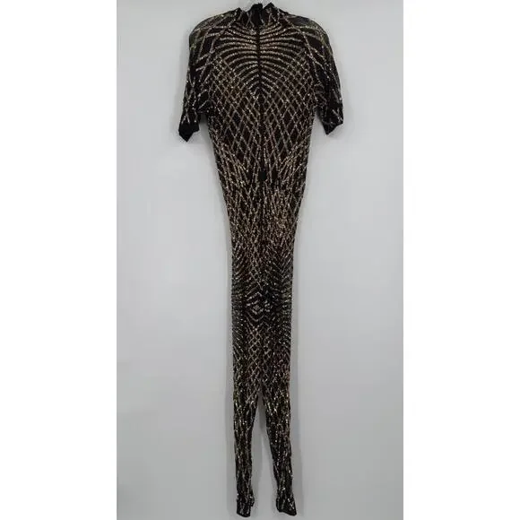 Slick it Up New York Mens Black Gold Sequin Short Sleeve Jumpsuit Sz S