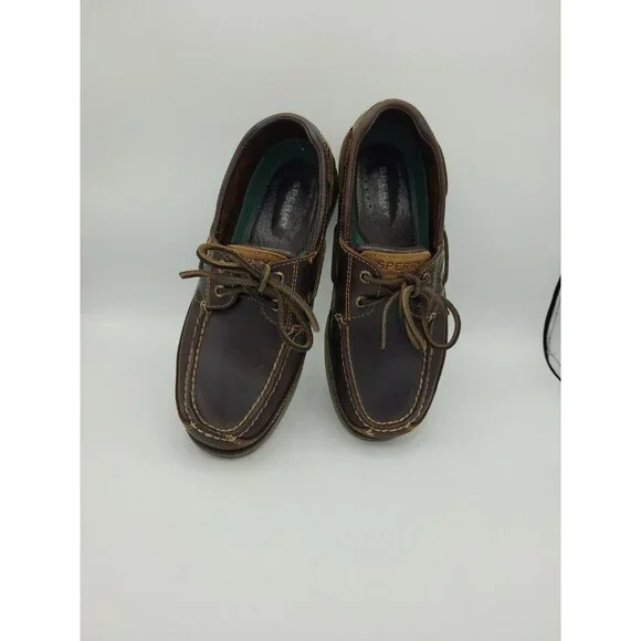 Sperry Top Sider Dark Brown 2-Eye Leather 0764027 Boat WIDE Shoes Men’s Size 7.5