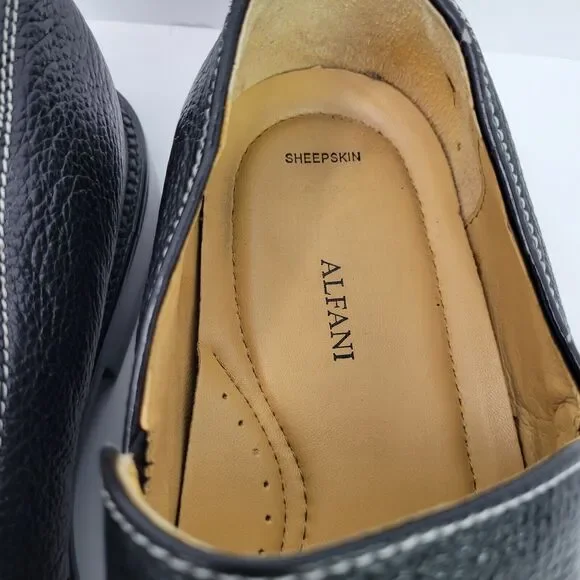Alfani Mens Size 8.5 Slip On Leather Sheepskins Dress Black Leather Shoes