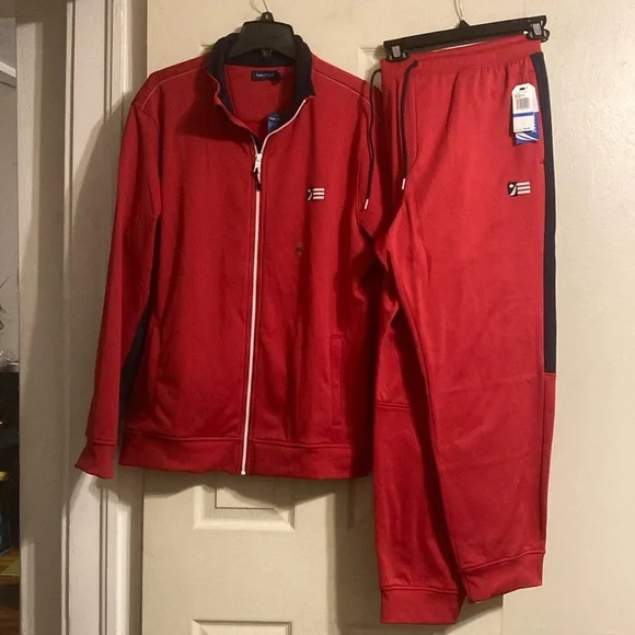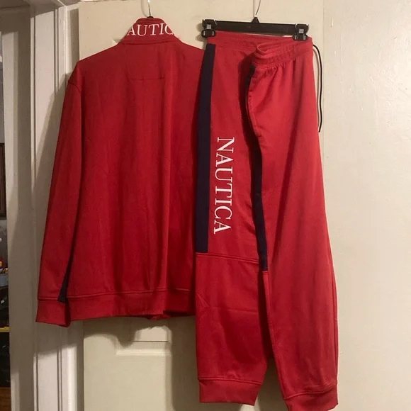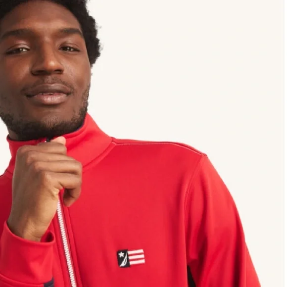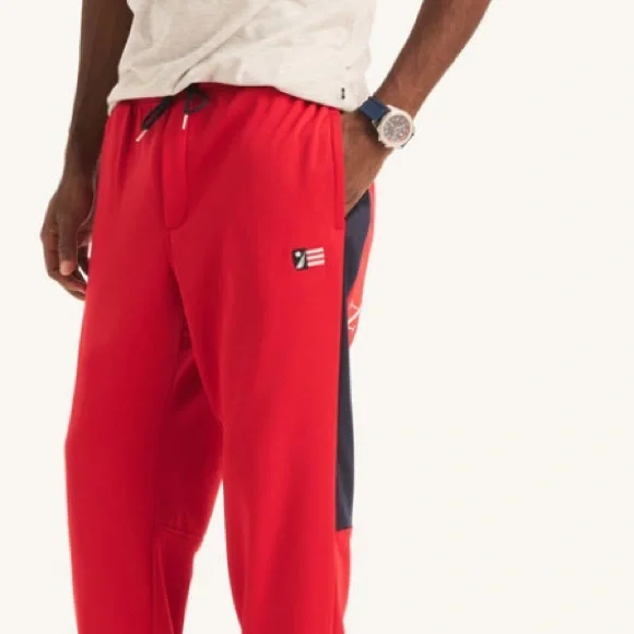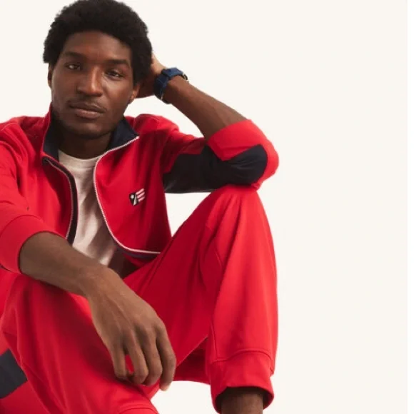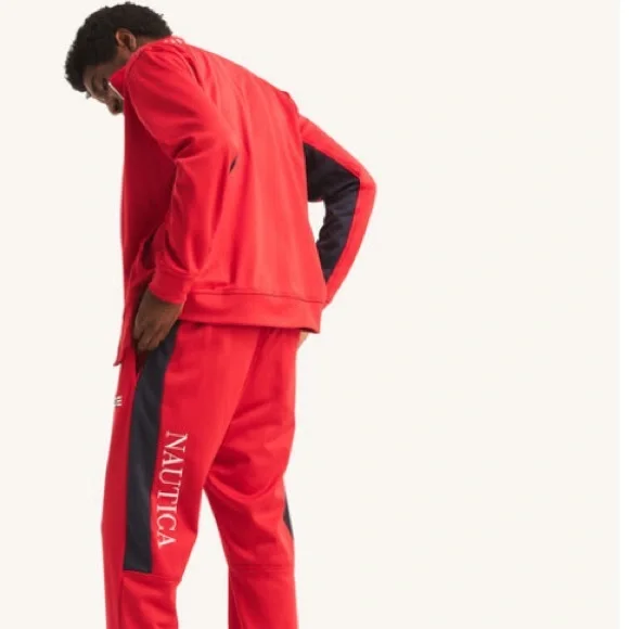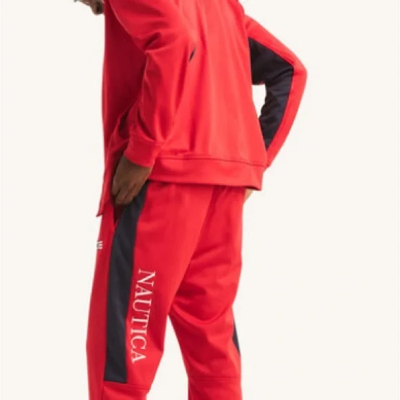 Nautica Sustainably Crafted Colorblock Team Jacket/Fleece Pants - Nautica Red