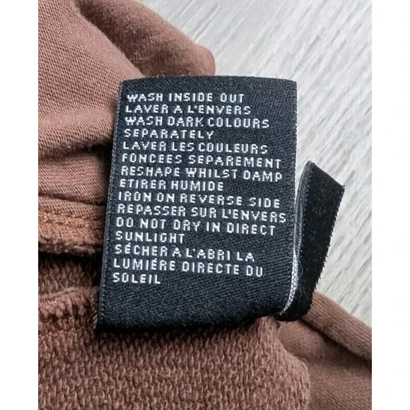 The drawstring is missing. There is also some slight wear on the front middle seam. All of this information is shown in the above pictures. Otherwise, in good condition. Comes from a smoke-free home. Also, please see above pictures for approximate measurements.