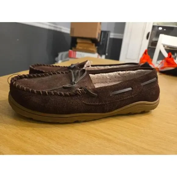 Rockport Slippers Faux Fur Lined Moccasins 119841 Brown Suede Mens Size 10.5/11