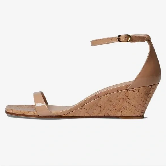 Stuart Weitzman Nudistcurve 50 Wedge Cork Patent Leather Ankle Strap Sandals NWT06/24-b14PRODUCT DETAILSFits true to size, order your normal sizeOpen square toeBuckled ankle...