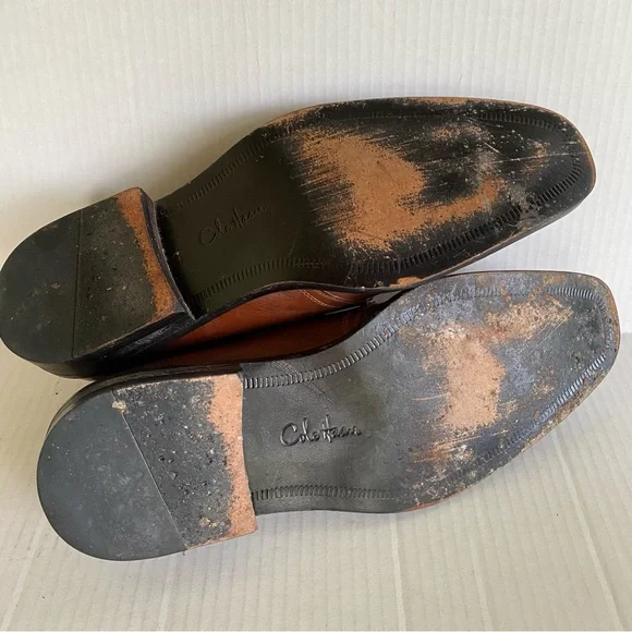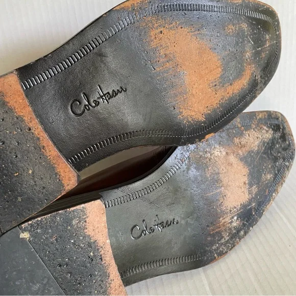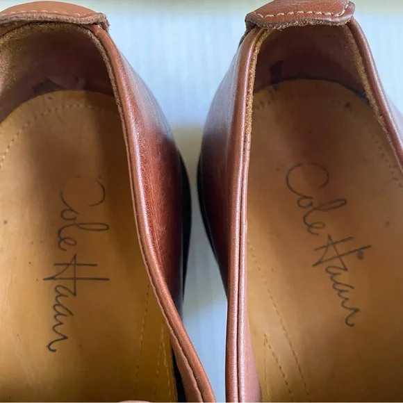 Cole Haan Split Toe Leather Oxford Dress ShoesBrand: Cole Haan Labeled size: 10MCondition:good preowned see photos for wearMaterial:leatherWhat’s cool?Cognac leather oxfords,...