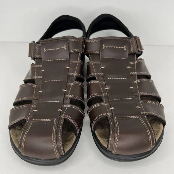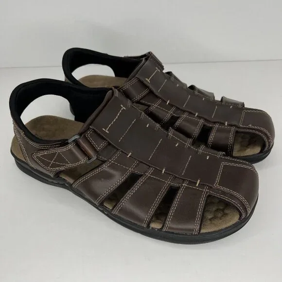 These Dockers Sport Fisherman Sandals are a perfect choice for anyone who wants comfort and style. With a hook and loop closure, they are easy to put on and take off, and the rubber sole provides excellent grip on any surface. The sandals are made of synthetic material, which makes them durable and long-lasting. They are designed for men´s casual wear and available in brown color. The sandals have a standard shoe width and are suitable for men with US shoe size 13.These sandals are perfect for outdoor activities like hiking, fishing, and camping.100% CUSTOMER SATISFACTION IS OUR GOAL!Our items are always carefully examined for condition, measured if necessary, and photographed in a climate controlled and smoke-free environment. We make every attempt to accurately describe and clearly picture the items we have for sale. Please, ALWAYS view all of the photos. We value your business and our goal is your complete satisfaction.FAST SHIPPINGAll items are packaged with care and shipped out the same or next business day via USPS, FEDEX, or UPS with tracking numbers so you are always informed.