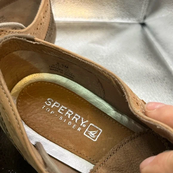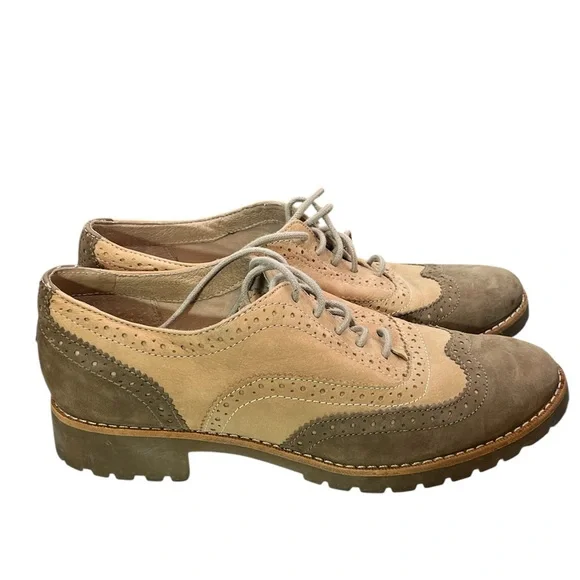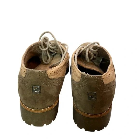 SPERRY TOP-SIDER 6.5 TWO-TONE BROWN/TAN LEATHER/SUEDE OXFORD SHOE LACE UP