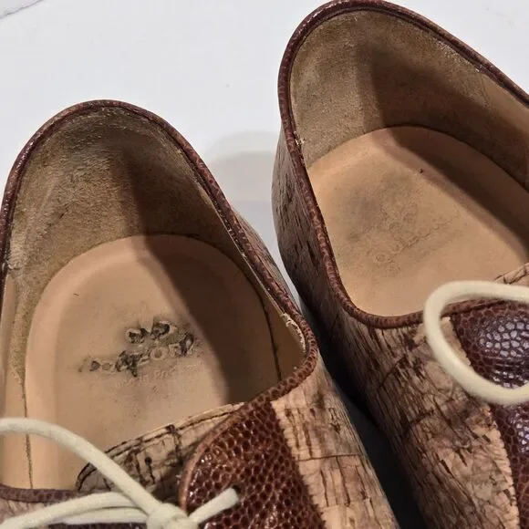 Queork Mens 46/ 12 Oxford Tan Brown Cork Leather Oxford Dress Shoes unique artsyVery good pre-owned condition. No flaws or excess wear noted. See photos for best description. Some...
