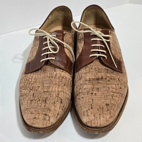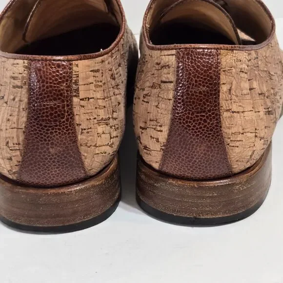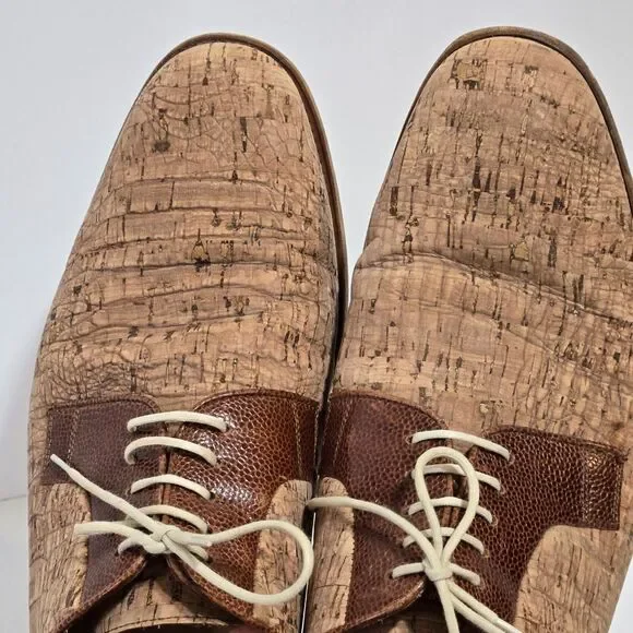 Queork Mens 46/ 12 Oxford Tan Brown Cork Leather Oxford Dress Shoes unique artsy
