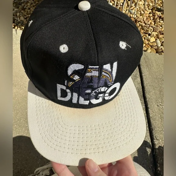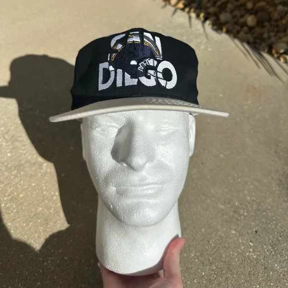 vintage made in the USA san diego chargers NFL football snapback hatslight yellowing on the top where the bottom of the top meets the visor overall great condition rare, unique piece