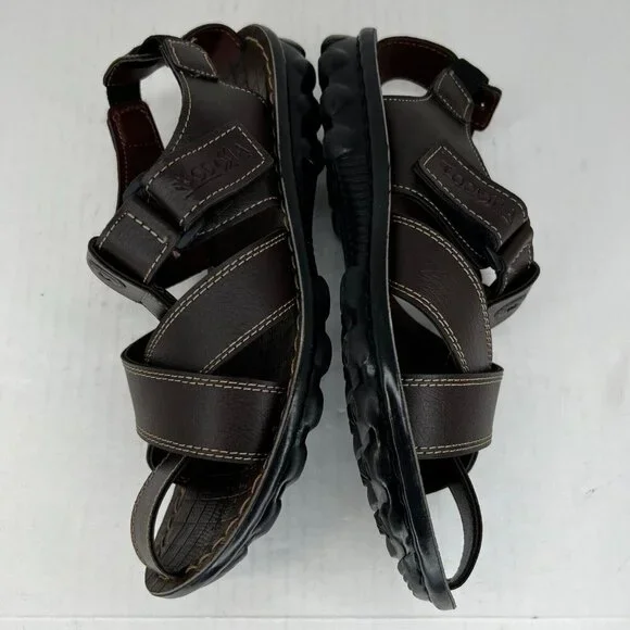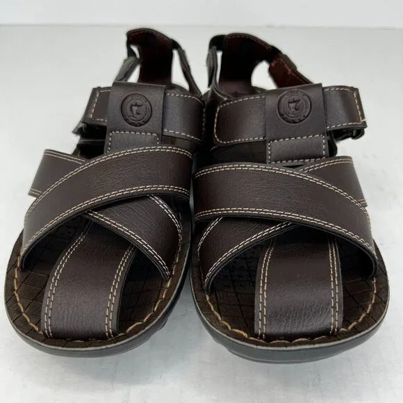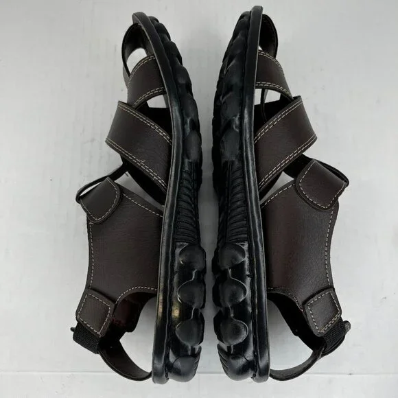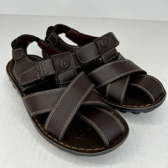 Elevate your casual shoe game with these Odyssia Men´s R312 Brown Leather Fisherman sandals. Featuring snap closures and peep toes, these sandals are perfect for summer, fall, and spring. The leather upper and lining material add durability and breathable comfort. The adjustable ankle strap and straps provide a secure fit, while the cushioned insole with arch support ensures all-day comfort. The slip-resistant outsole offers excellent traction, making them perfect for any terrain. These lightweight, waterproof sandals are ideal for any occasion, whether it´s a stroll in the park or an afternoon at the beach.100% CUSTOMER SATISFACTION IS OUR GOAL!Our items are always carefully examined for condition, measured if necessary, and photographed in a climate controlled and smoke-free environment. We make every attempt to accurately describe and clearly picture the items we have for sale. Please, ALWAYS view all of the photos. We value your business and our goal is your complete satisfaction.FAST SHIPPINGAll items are packaged with care and shipped out the same or next business day via USPS, FEDEX, or UPS with tracking numbers so you are always informed.