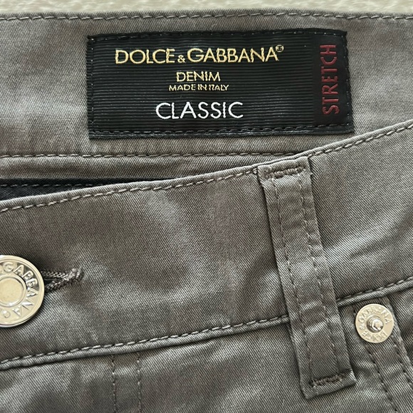 New with tags attached Dolce & Gabbana Denim Classic Trouser With StretchColor is Grigio/GreySmall mark on front as shown, almost the color of the pants so not very noticeable Waist 17.5”Front rise 9”Inseam 30.5”