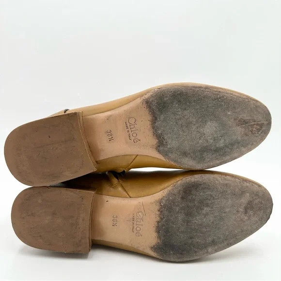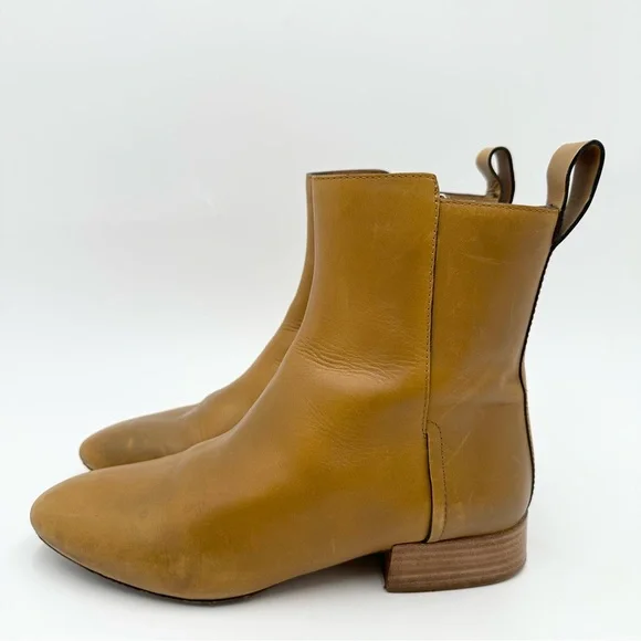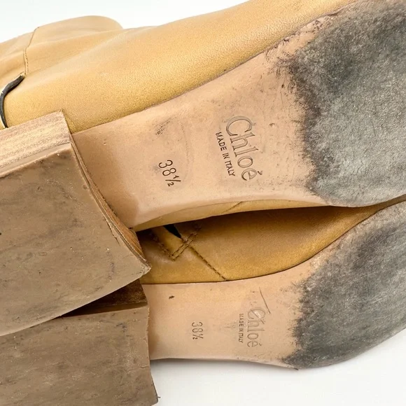 Preowned great condition, some wear shown on the leather soles but lots of life left in these and could always be upgraded from a cobbler. Leather is in great condition Size 38.5 / 8.5 US 1" (25mm) heel, approximatelyTapered toe, stacked leather heelConcealed zipper at sideLeather soleAvailable in MustardMade in ItalyNo boxStyle CH23180