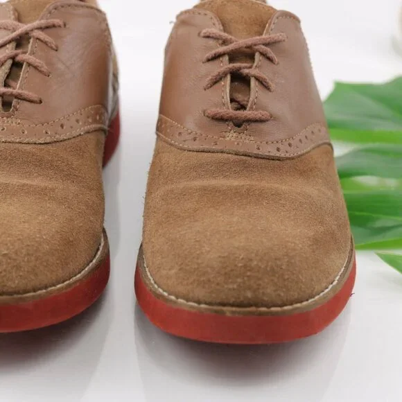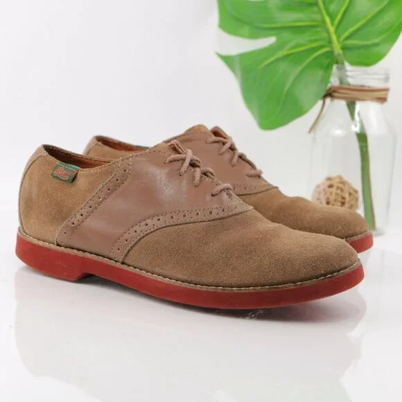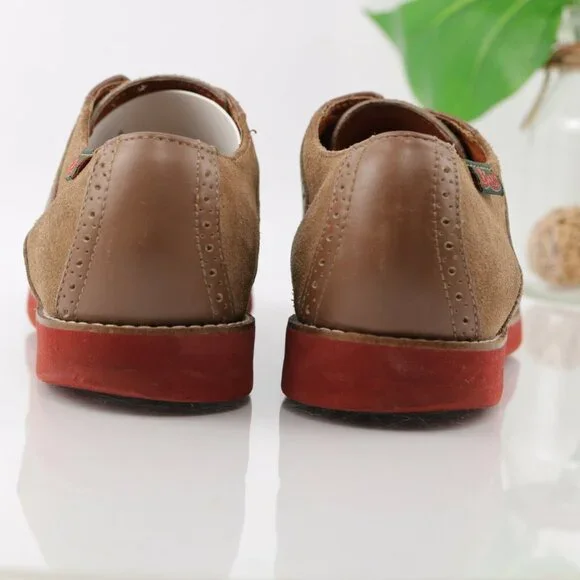 GH Bass Mens Saddle Oxford Size 7.5 Tan Camel Suede Leather Gum Sole Casual Shoe