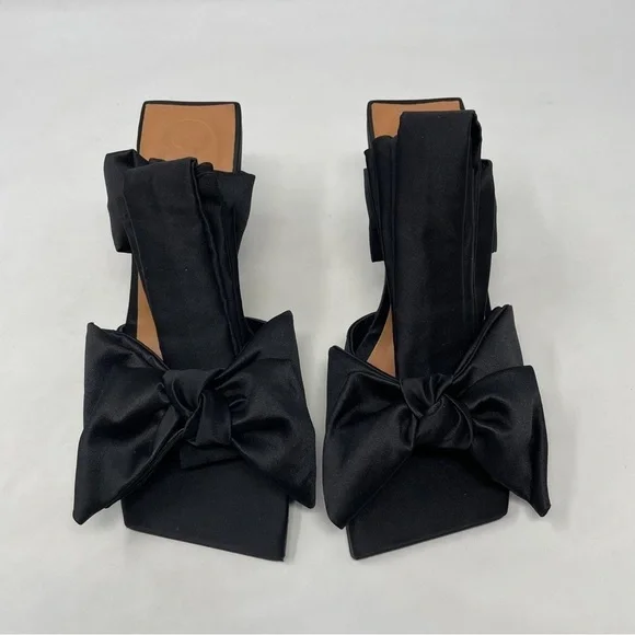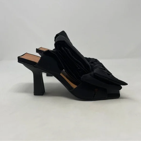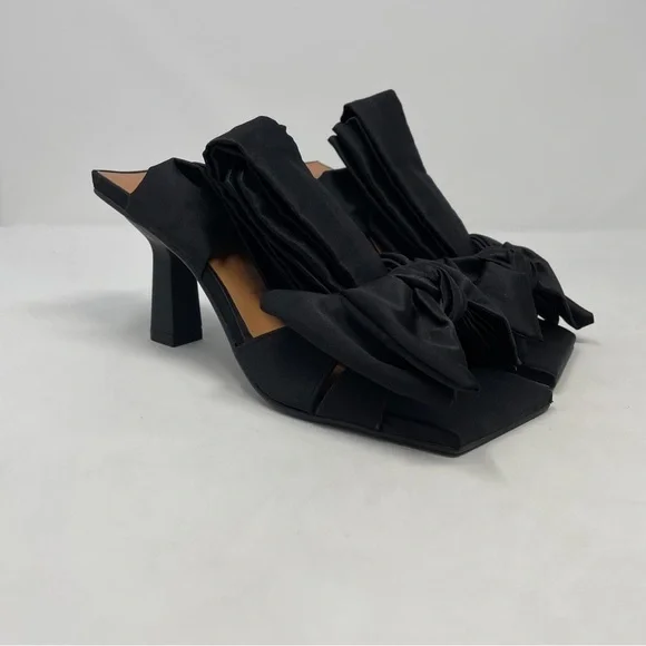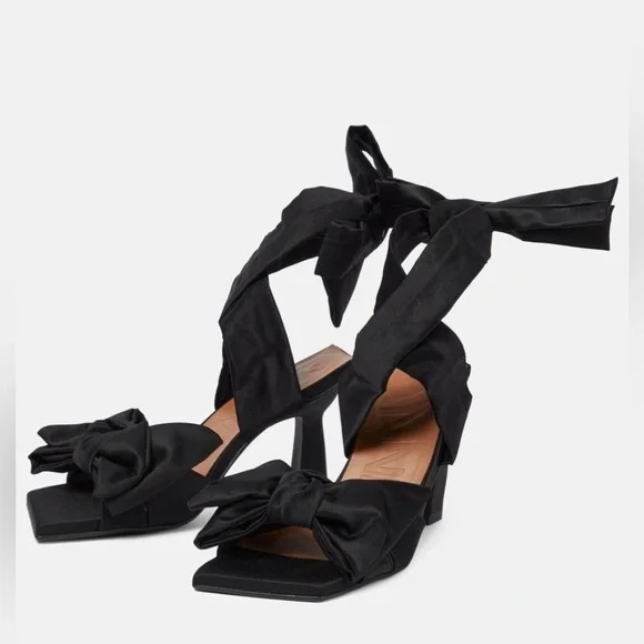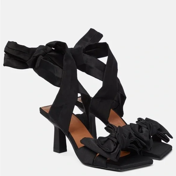 GANNI Soft Bow Ankle Tie High Heel Sandals in black - NWT