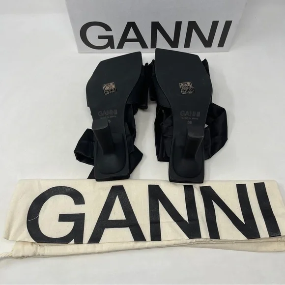 GANNI Soft Bow Ankle Tie High Heel Sandals in black - NWT 07/24/b17New in box.EU 36