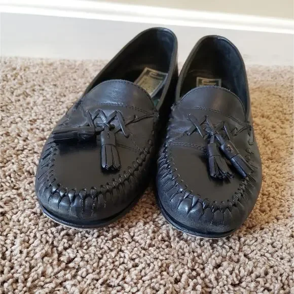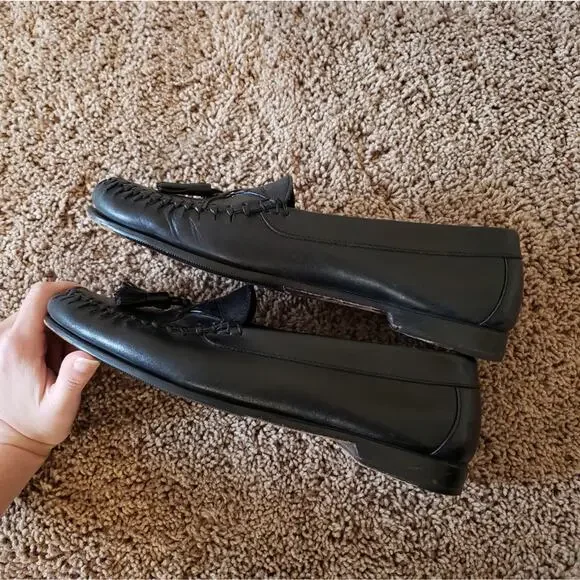 j Murphy vintage leather black tassel loafer dress shoe slip on 10Made by Johnston & Murphy. rounded toe with tassel and stitching accent.gently preowned with minor signs of wear....
