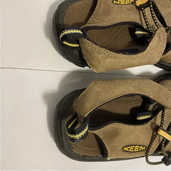 keen mens sz 7 outdoor waterproof hiking camping cycling sandals SM0708. Top inside edge of right shoe has little cracking (shown in pic).