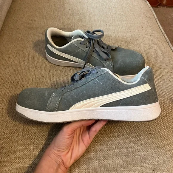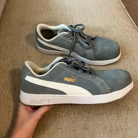 Men’s size 9PumaWater and oil slip resistant In great used condition Grey with white accents Low Industrial shoe