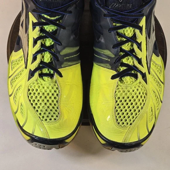 Mizuno Wave Tornado X Volleyball Shoes Mens 15 Navy Yellow DynamotionFit Indoor